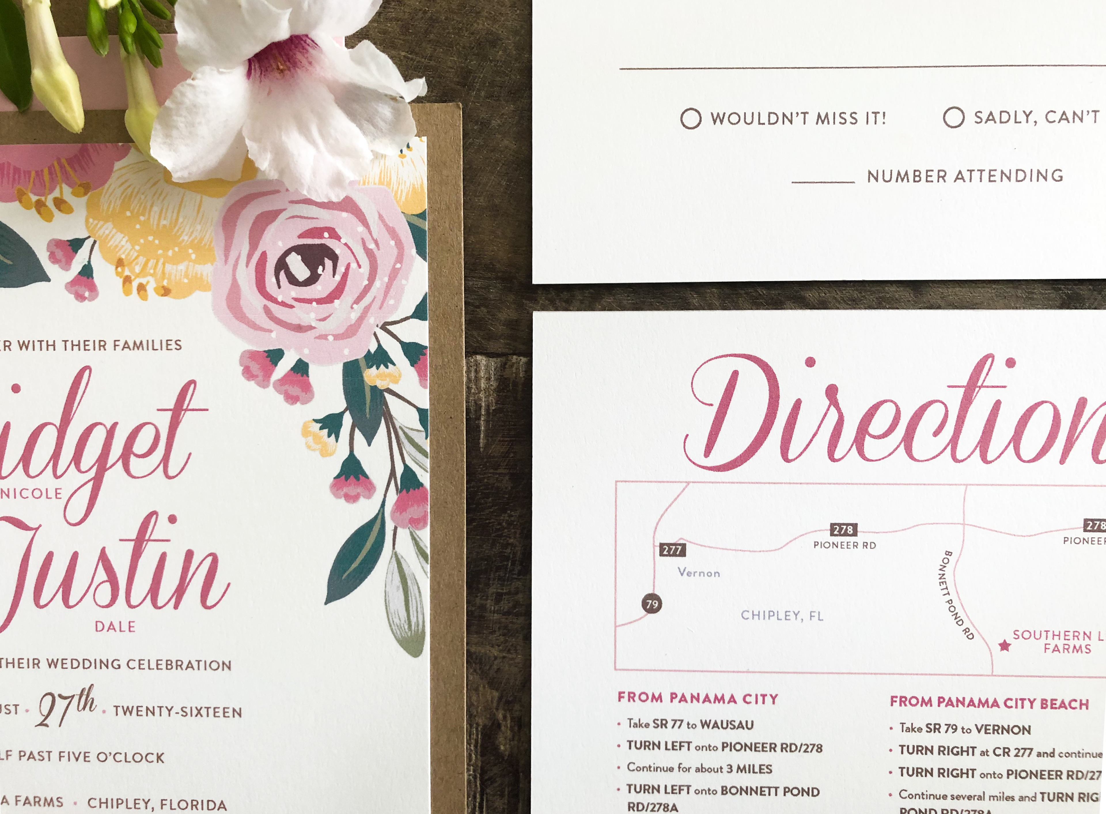 My clients for this wedding wanted an invitation design that was simple yet elegant and timeless. Using their modern color scheme of sage, beige and black I created a piece that is both delicate and romantic in its hierarchy. The curves found on the invitation inserts as well as the menu emphasize the arches and interesting architectural elements found throughout their wedding venue. Hand-drawn cocktail signs add playfulness while the large seating chart creates a big impact.